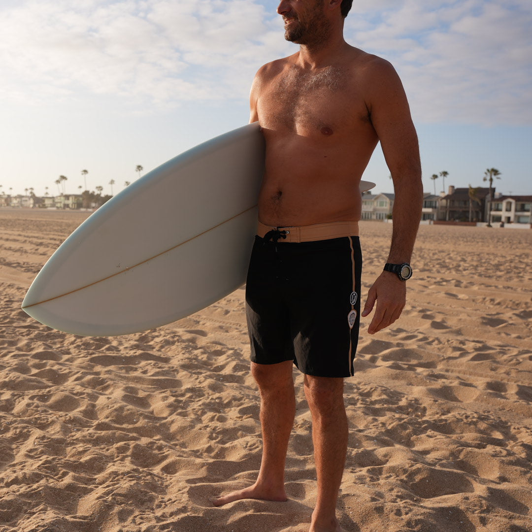 4-way stretch boardshort with contrast side taping and a stable zigzag waistband.